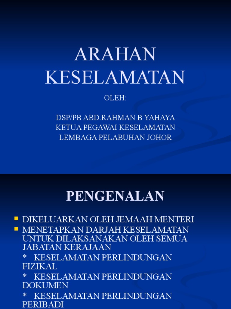 Jabatan pembangunan & pengurusan harta. 30/05/2012 arahan keselamatan » dikeluarkan oleh jemaah menteri » menetapkan darjah keselamatan mengikut prinsip tertentu arahan terbahagi 2 : Keputusan tapisan keselamatan direkodkan dalam buku rekod. As'ad mengembangkan kelompok belajar eksperimental menggunakan metode kembangannya, dibantu oleh tim tadarus. 2.2 berdasarkan buku arahan keselamatan yang dikeluarkan oleh pejabat ketua pegawai keselamatan kerajaan malaysia.