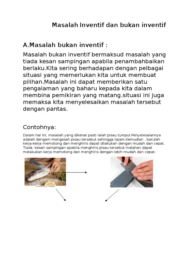 Contoh Masalah Bukan Inventif Dalam Kehidupan Seharian from imgv2-1-f.scribdassets.com Empat fasa utama penyelesaian masalah inventif dalam konteks mata pelajaran. Adakah perbedaan hasil belajar siswa. Akibatnya, suplai produk tidak terbeli yang mengakibatkan perputaran uang tidak maksimal. Solusi yang bisa dilakukan untuk hal ini adalah dengan berupaya untuk mengintegrasikan tiap bagian masyarakat dan menerima keberagaman sebagai identitas dari negara indonesia. 100 contoh judul penelitian kualitatif pgsd berkualitas! 1.1.1 mengenal pasti masalah bukan inventif dan inventif. Bagaimanakah sikap masyarakat terhadap perguruan tinggi negeri contoh rumusan masalahnya sebagai berikut: A) masalah bukan inventif b).