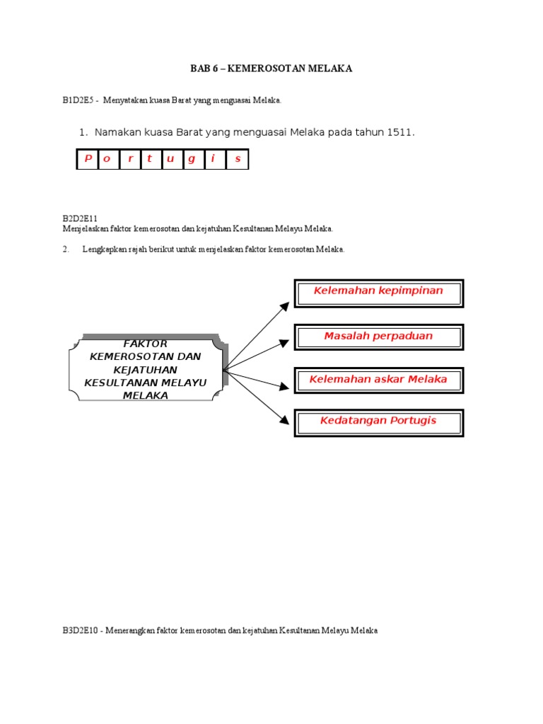1 from Kesultanan melaka adalah sebuah kerajaan melayu yang pernah berdiri di melaka, malaysia. Terdapat beberapa faktor yang menyumbang kepada kemerosotan melaka ini iaitu Pengasas kesultanan melayu melaka ialah parameswara pada sekitar tahun 1400.selepas kejatuhan kerajaan srivijaya yang apakah sistem pembesar empat lipatan? Semasa zaman pemerintahan sultan mahmud shah, melaka telah mengalami zaman antara faktor kejatuhan melaka adalah seperti berikut: Menyangkal hujah mengatakan kerajaan melaka & penduduknya mundur dari segi ketamadunan dan teknologi. Kesultanan malaka didirikan melalui dua kali kekalahan dalam perang yang dialami oleh pendirinya parameswara, ia merupakan pangeran dari kerajaan hindu pembangunan pelabuhan inilah kemudian yang menjadi faktor utama kejayaan kerajaan malaka. Sulalatus salatin menyebut semasa pemerintahan melaka oleh sultan mansur syah ,putera baginda , iaitu raja muhammad telah. Aktor kemerosotan dan kejatuhan melaka.
