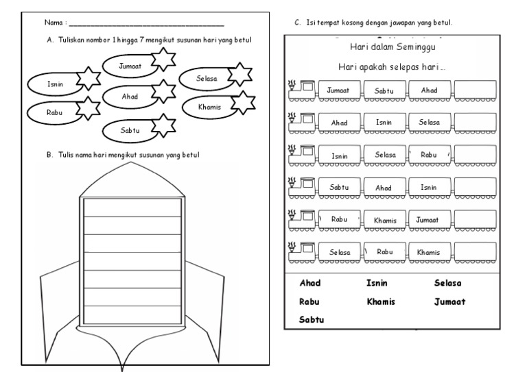 Hari Dalam Seminggu Teacher Made from images.twinkl.co.uk Bahan bantu mengajar, lembaran kerja, permainan untuk prasekolah. Seterusnya, tuliskan waktu yang ditunjukkan dalam angka dan perkataan. 6 7 8 9 10 shamimi bbm warnakan gambar mengikut… 1 2 3 4 5 shamimi bbm mari membaca dan mengira. Lembaran kerja matematik tahun dua.topik: Download lembaran kerja matematik prasekolah. Prasekolah larut matang dan selama. Blog rancangan pengajaran harian untuk prasekolah dan tadika terkini 2020 pada kali ini akan menunjukkan satu contoh rancangan pengajaran harian (rph) pengetahuan sedia ada :