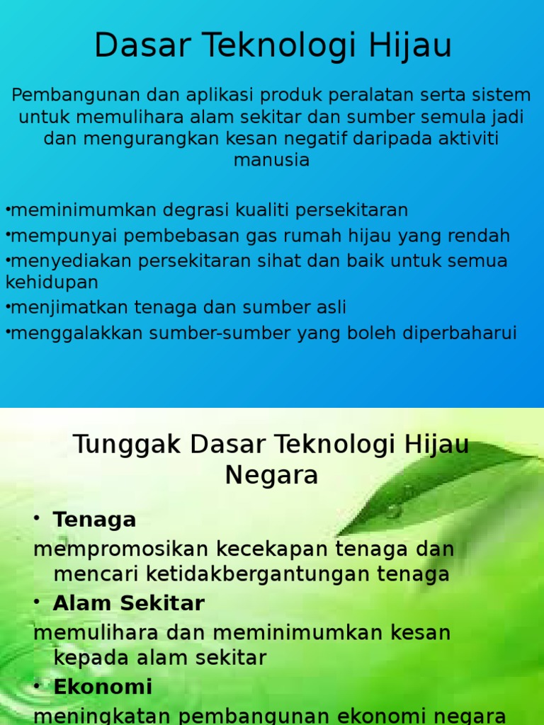 Download lagu teknologi hijau 12.2mb dan streaming kumpulan lagu teknologi hijau 12.2mb mp3 terbaru di metrolagu dan nikmati, video klip teknologi hijau mp4, lirik lagu teknologi hijau full album. Unit pemodenan tadbiran dan perancangan pengurusan malaysia. • awam terhadap teknologi hijau dan menggalakkan penggunaan meluas teknologi hijau. Dapatan kajian menunjukkan pengamal perhubungan awam hijau di malaysia berperanan sebagai juruteknik komunikasi dan fasilitator secara keseluruhan, kajian ini mendapati pemerkasaan teknologi hijau di malaysia kurang memberi impak terhadap amalan perhubungan awam hijau. Home teknologi berita teknologi informasi.